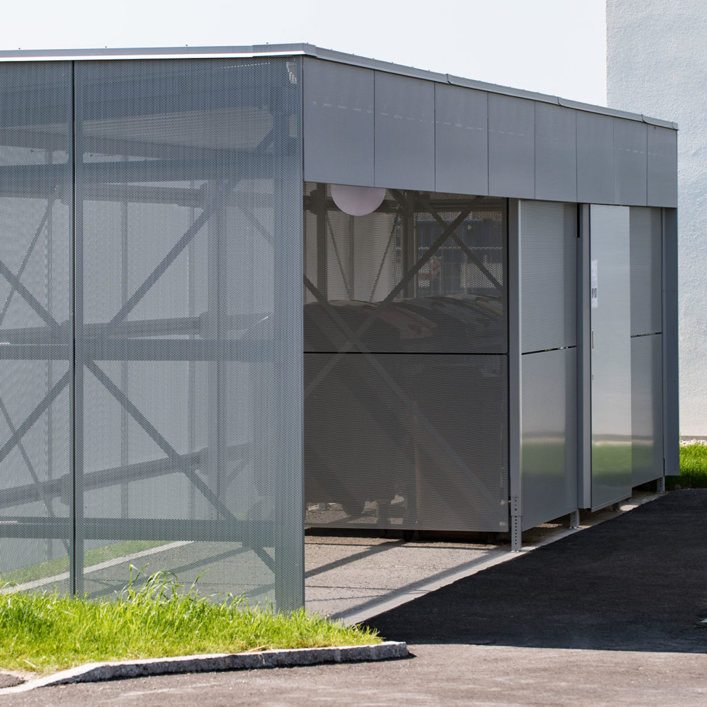 Carports do not have to have the same design all round. Depending on the design specifications, different side wall elements can ensure that carports are closed on one or more sides. Thanks to the steel construction, carports from Käuferle can be configured flexibly - regardless of whether only cars or bicycles are to be stored in directly attached enclosures.