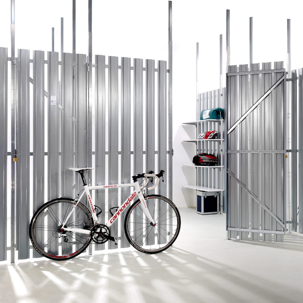 Wall elements made of steel slats or perforated sheets or mesh partitions create secure storage areas. All metal components are hot-dip galvanised for a long service life. In addition, there are many intelligent equipment details with which the partition wall solutions can be realised flexibly and according to your wishes.