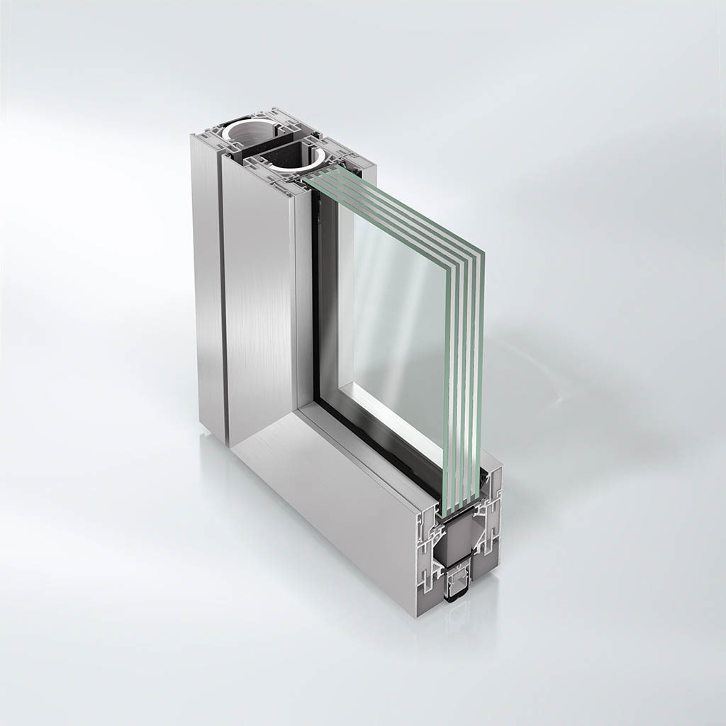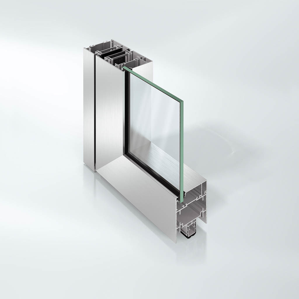 Die neue, innovative Profilgeometrie ermöglicht eine effiziente Fertigung und Montage von verdeckt liegenden Beschlägen durch den Entfall von zuvor notwendigen und aufwendigen Fräsarbeiten. Ein Meilenstein in puncto rationelle Montage ist das nahezu werkzeuglose Befestigungssystem der Türbeschläge.