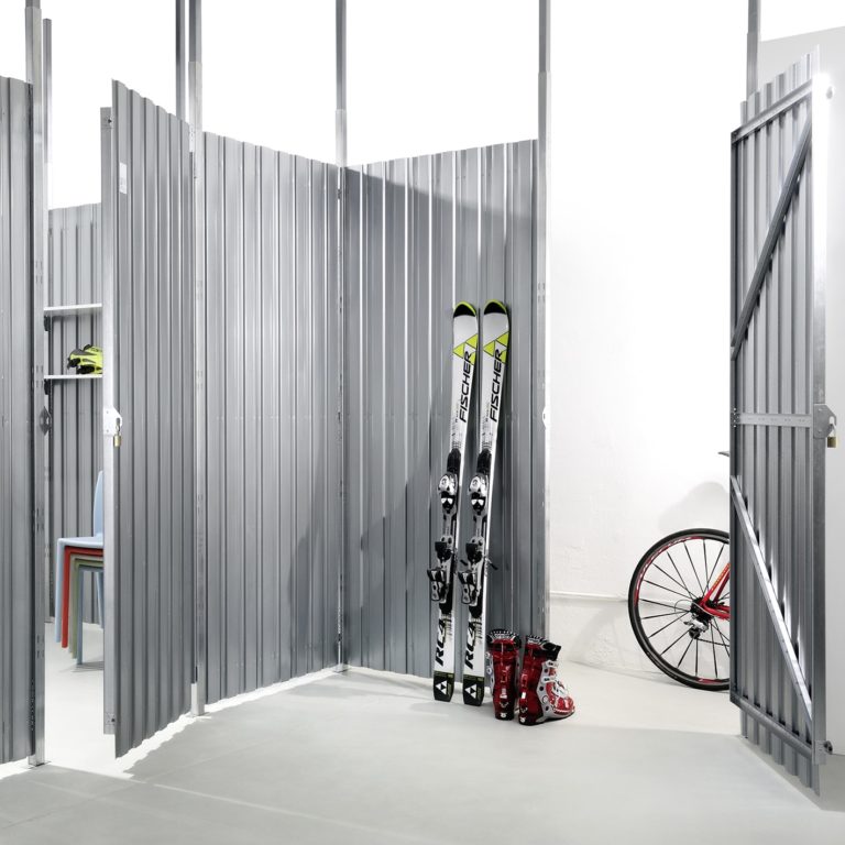Als Baukastensystem verfügen diese System-Kellertrennwand über eine robuste, modulare Stahlkonstruktion, die flexibel an unterschiedlichste Raumgrundrisse und -höhen angepasst werden kann. Hochwertige, langlebige und ästhetische Metall- und Holz-Bekleidungen sowie zahlreiche intelligente Ausstattungsdetails sorgen für individuelle Gestaltungsmöglichkeiten.